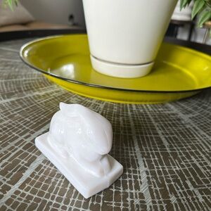 This minimalist white sculpture captures the serene essence of a resting rabbit, crafted with smooth curves. Vintage, excellent condition, no flaws. Measurements in pics. This is by Heisey. Its contemporary design makes it a perfect addition to any art collection, home decor or office paperweight. It’s adorable! Happy Poshing!