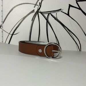 Michael Kors Brown Leather Belt with Silver Buckle, Reversible