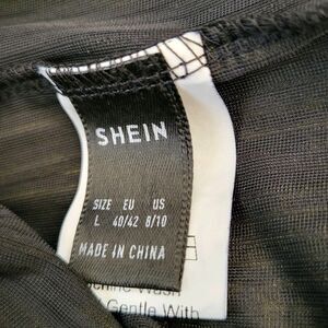 Elevate your wardrobe with the chic Women's Rib Velvet Dress by SheIn. This versatile size large (8-10) sheath dress in classic black features a timeless striped pattern, providing an elegant yet understated style that's perfect for a variety of occasions. Designed with a comfortable crew neck and convenient pullover closure, it's made to flatter your silhouette with its cinched waist and flowy fabric.