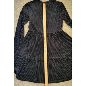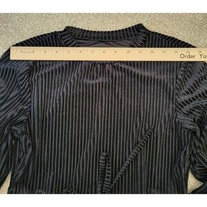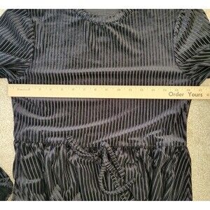 Womens Rib Velvet Dress Size L 8 Black Shein Long Sleeve Crew Neck Cinch Waist