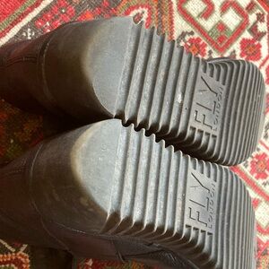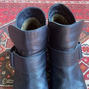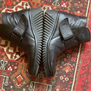Size 8 (39) Fly London Leather Velcro Slip On Boots black wedge heel monk strap