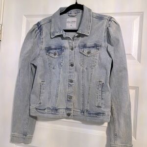 Lily & Lottie NWOT Denim Blue Women's Jacket with Puff Shoulders and Pockets