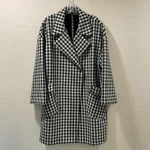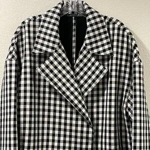 (NEW) BLACK TAPE Long Line Coat Buffalo Check Long Sleeve Oversize, B & W - XL
