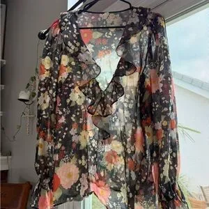 Bought at the warehouse sale last year, never worn other than to try on.. noticed later there is a small hole by buttons, barely noticeable—scroll for pics.