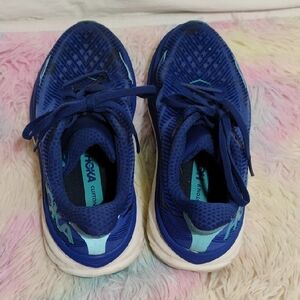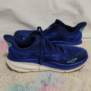 Gently worn, Hoka Clifton 9 Evening sky Dynamic blue athletic shoes by HOKA. Perfect for running and active wear. Need a wash but no rips or tears!