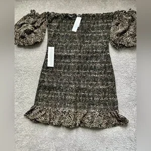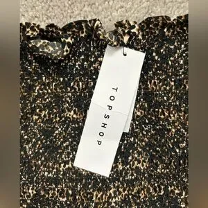 Topshop Leopard Print Off Shoulder Puff Sleeve Smocked Mini Dress Size 10 US NEW with tags!