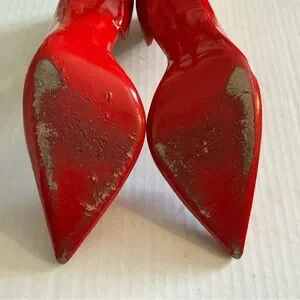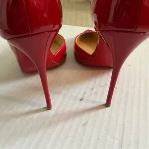 Christian Louboutin classic point toe D'orsay Iriza pump, 100mm heel height, size 40.5...small blemishes on heels that have been repaired and no visible unless looking up close....seldom worn and still has the original heel taps...includes louboutin red storage bag...from a smoke free and pet free home....