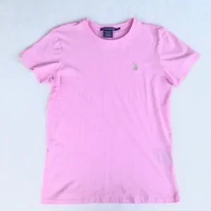 Ralph Lauren Sport pink t-shirt with green embroidered polo pony logo. Very soft knit, 100% cotton. Preppy and cute. Excellent condition - no flaws. Approx. flat lay measurements: length 24", width across underarms 16 1/2". Photos are mine, of the exact shirt you’ll receive.