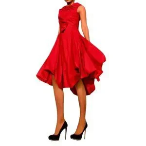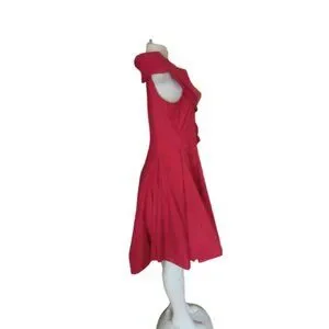 Samuel Dong Red Bubble Dress W/ Asymmetrical Ruffle Collar & Sleeveless Fit Medi