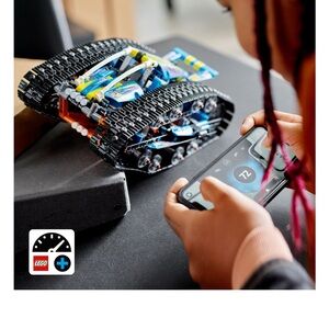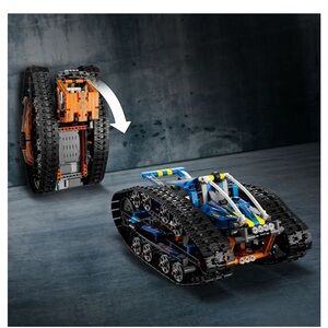 LEGO Technic App-Controlled Transformation Vehicle (42140), a 2 in 1 remote control flip car. In a first for LEGO Technic sets, this transforming remote control car toy flips over when it drives into a wall to reveal the second vehicle. No wall? No problem! Kids can turn the remote control flipping car over by hand to switch vehicles. It will reveal a brightly colored tracked racer on one side and an orange exploration truck on the other, with lots of features for kids to discover. Kids will love using the CONTROL+ app to operate their off road RC remote control toy car that flips. Using the app, they can steer the vehicle and complete fun challenges. The app experience changes for each vehicle and cleverly switches screens when the model flips. LEGO Technic RC remote control cars feature realistic movement and mechanisms, making them a top gift idea for any LEGO builder interested in engineering. This 360° double-sided vehicle measures over 4.5 in. (12 cm) high, 10 in. (26 cm) long and 7.5 in. (20 cm) wide. Contains 772 pieces