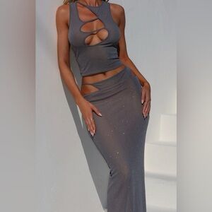 OUTCAST ARDELL MAXI SKIRT And TOP SET SILVER SPL XS