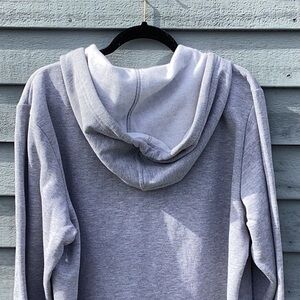 NWT Stylish gray zip-up hoodie with headphone drawstrings. Features HoodieBuddie branding.