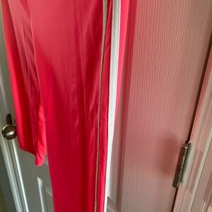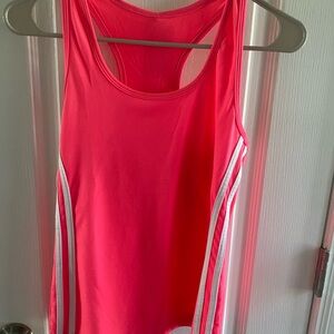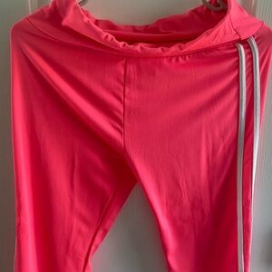 Cute pink set with racer top and race stripes down the sides of the top and Capris.