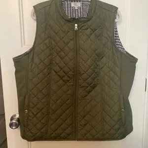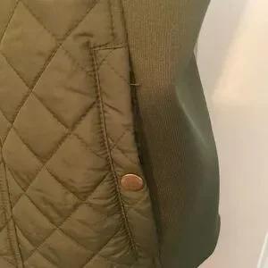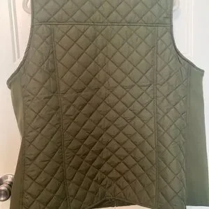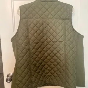 Stylish olive green quilted vest. Perfect for layering.