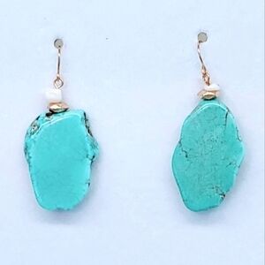 Crafted with care in the United States, these earrings are nickel-free and feature a comfortable hook closure. The howlite stones have a turquoise hue, adding a touch of bohemian elegance to your look. These earrings are handmade and measure 2 inches in length, making them a statement piece that will turn heads.