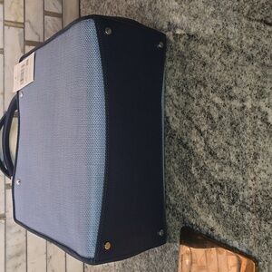 Kate Spade woven satchel with leather sides, bottom, trim, and handles. Also comes with leather crossbody strap that is removable.
