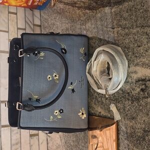 Kate Spade Blue Floral Triple Compartment Satchel