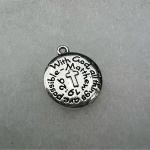 “With God all things are Possible” silver metal Bible verse pendant