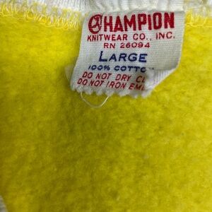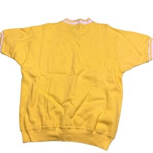 Vintage Champion running man 1960s Thomas Jefferson Raiders Auburn Washington. ringer crewneck sweatshirt. Made in the USA. Tagged as a large, measures as a medium. 21 inches pit to pit, 24 inches long. Excellent vintage condition. Flock lettering. Sunny, yellow, and white. Smoke and pet free home. Thomas Jefferson high school. Raiders. Vintage 60s. Running man. Champion. 🇺🇸