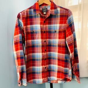 J. Crew Midweight Button Down Shirt in Red Leaf Large Plaid Size Small