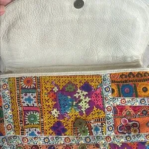 Beautiful clutch! Leather inside. Could add a strap if you want. Looks new.