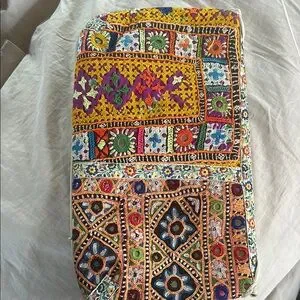 Vibrant and stylish, this embroidered clutch is perfect for adding a pop of color to any outfit. Featuring a mix of green, orange, and cream hues, it's a must-have accessory for fashion-forward individuals.