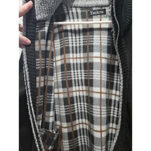 Yeokou Cashmere Wool Blend Sweater Jacket Men's Large L Black Full Zip Plaid