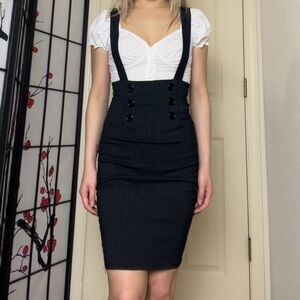 Solar USA | Dark Navy Blue Pinstripe Pinafore Bodycon Pencil Skirt Dress