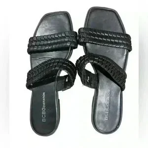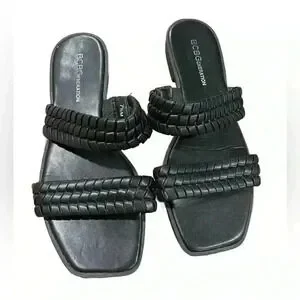 BCBGENERATION Womens Black Comfort Lara Square Toe Slip On Sandals WomenSize 7.5