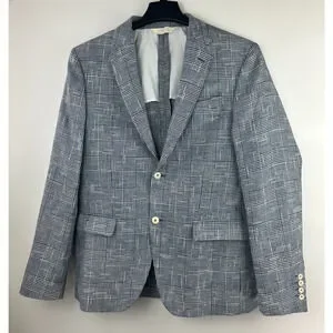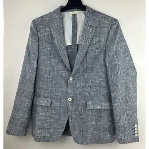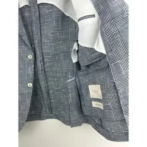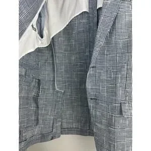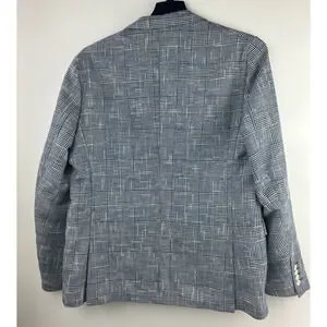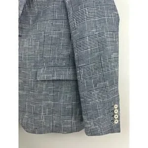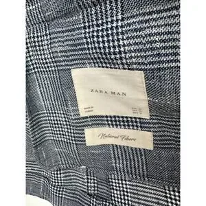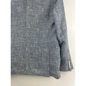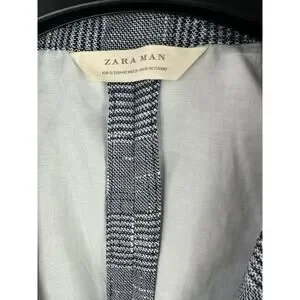 Zara Man Blazer Jacket Plaid Houndstooth Navy Blue & White US Men's Size 42