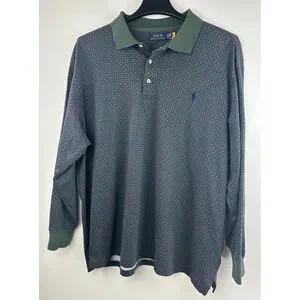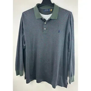 *Flawed Polo Ralph Lauren Soft Cotton Long Sleeve Polo Shirt Geometric Men's 2XB