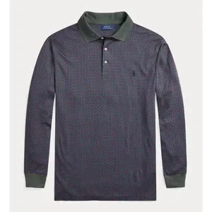 Soft Cotton Long Sleeve Polo Shirt Geometric