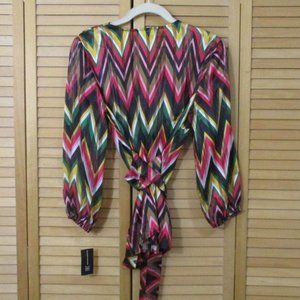 Inc International Concepts Chevron Rainbow Faux Wrap Top. This Item Is Lightweight, Unlined & Sheer. Size Small. NWT! Retail: $79.50.