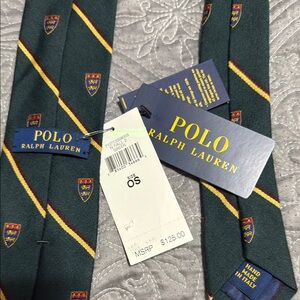 Elevate your style with this Polo by Ralph Lauren tie. Featuring a sophisticated green base with yellow accents, it's perfect for any formal occasion.