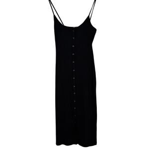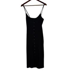 Sexy ZARA Ribbed Bodycon Midi Dress Strappy Stretch Slim Round Neck M Black Button Closure
