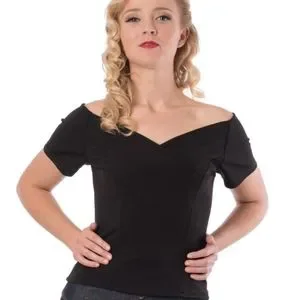 Retro rockabilly cutie vibes from this black off the shoulder top from Steady Clothing in size extra large. Pairs with anything and cut to flatter your form. This item sold out around the web, in like new condition.