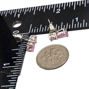 Minimalist Light Pink Earrings Studs Teardrop Round Shaped Beads Silver Tone.