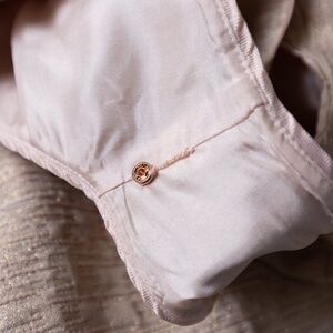 - Small snap closures in each shoulder to hold straps of slips or undergarments; lined