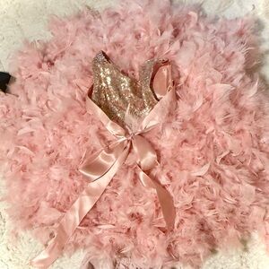 Pink Feathered Dress princess ball sequin photoshoot flower pageant crown lace