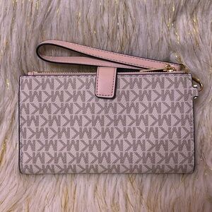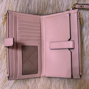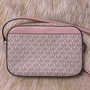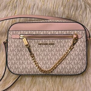 Elevate your style with this chic Michael Kors crossbody bag set. Featuring a sophisticated pink and cream design, this set is perfect for any occasion. The elegant gold accents add a touch of luxury.