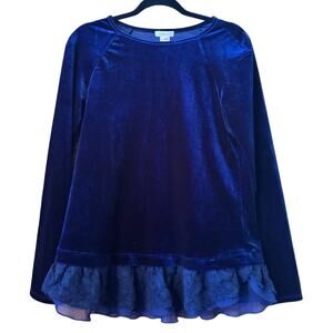 Sundance Royal Blue Velvet Lace Trim Long Sleeve Tunic Top Size S