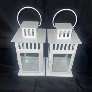 Enhance your home decor with this elegant set of white metal lanterns. Perfect for adding a touch of sophistication to any room.