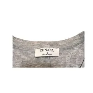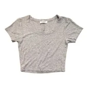 Zenana Cropped Short Sleeve Tee Womens Size Small Ribbed Scooped Neck Gray Shirt