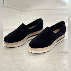 Stylish DKNY slip-on sneakers in black. Features a comfortable design. Dkny lior platform espadrilles size 7.5 in excellent condition like new never worn only without box