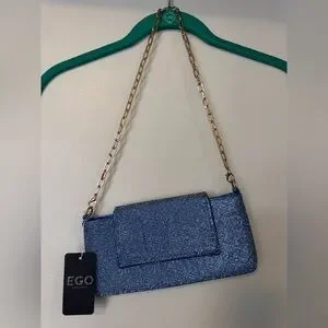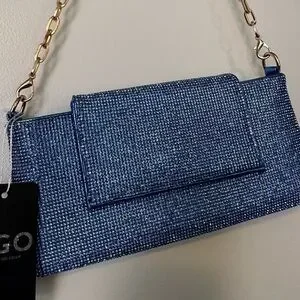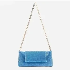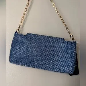 NWT BOXING CHAIN STRAP DETAIL RECTANGLE SHAPED SHOULDER BAG IN BLUE DIAMANTE