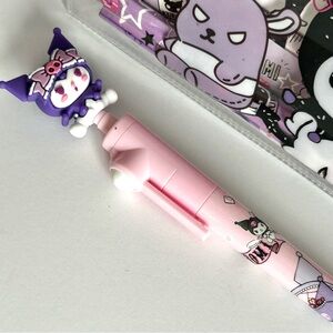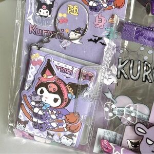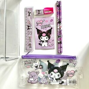 💜Kuromi clear vinyl pencil case. Includes: 2 pencils, eraser, small notepad, pencil sharpener