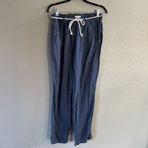 C&C Pants Womens Medium Blue Linen Drawstring Beach Coastal Lagenlook Pull On