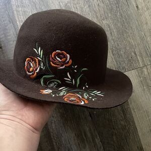 San Diego Hat Co Brown Wool Crown Hat Floral Embroidery One Size
