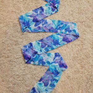 Watercolor Floral Tropical Teal Azure Silk Satin Tie Chiffon-Like Scarf