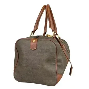 Vintage Fendi Brown Leather and PVC Boston Bag